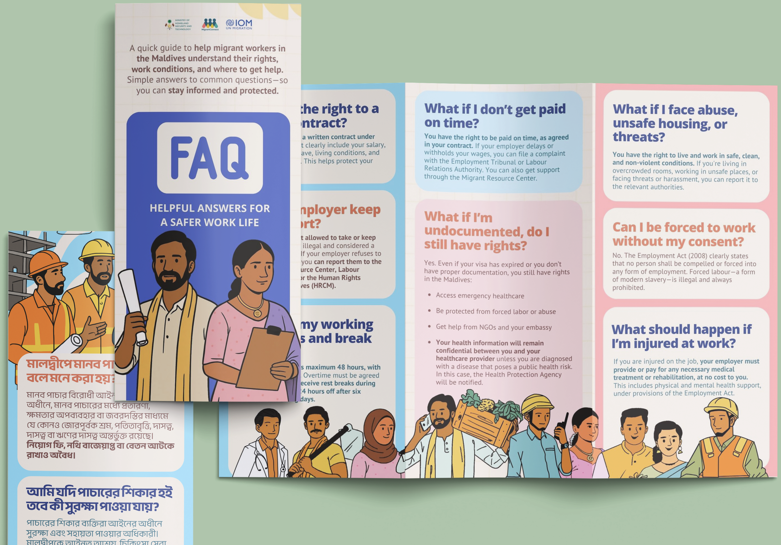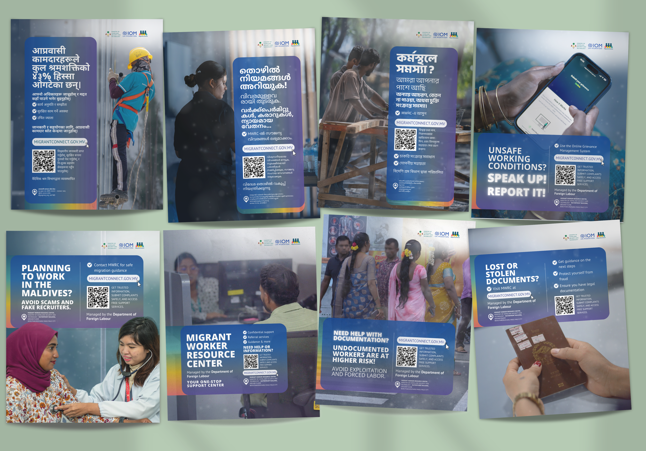 As part of the Migrant Workers Resource Centre (MWRC) Project, the first dedicated centre of its kind in the Maldives, we developed a comprehensive suite of multilingual communication materials with the International Organization for Migration Maldives, in partnership with the Government of the Maldives and migrant-serving organizations. The MWRC, inaugurated in June 2025 in Malé, serves as a central hub providing migrant workers with access to legal, health, and welfare information and referral services.