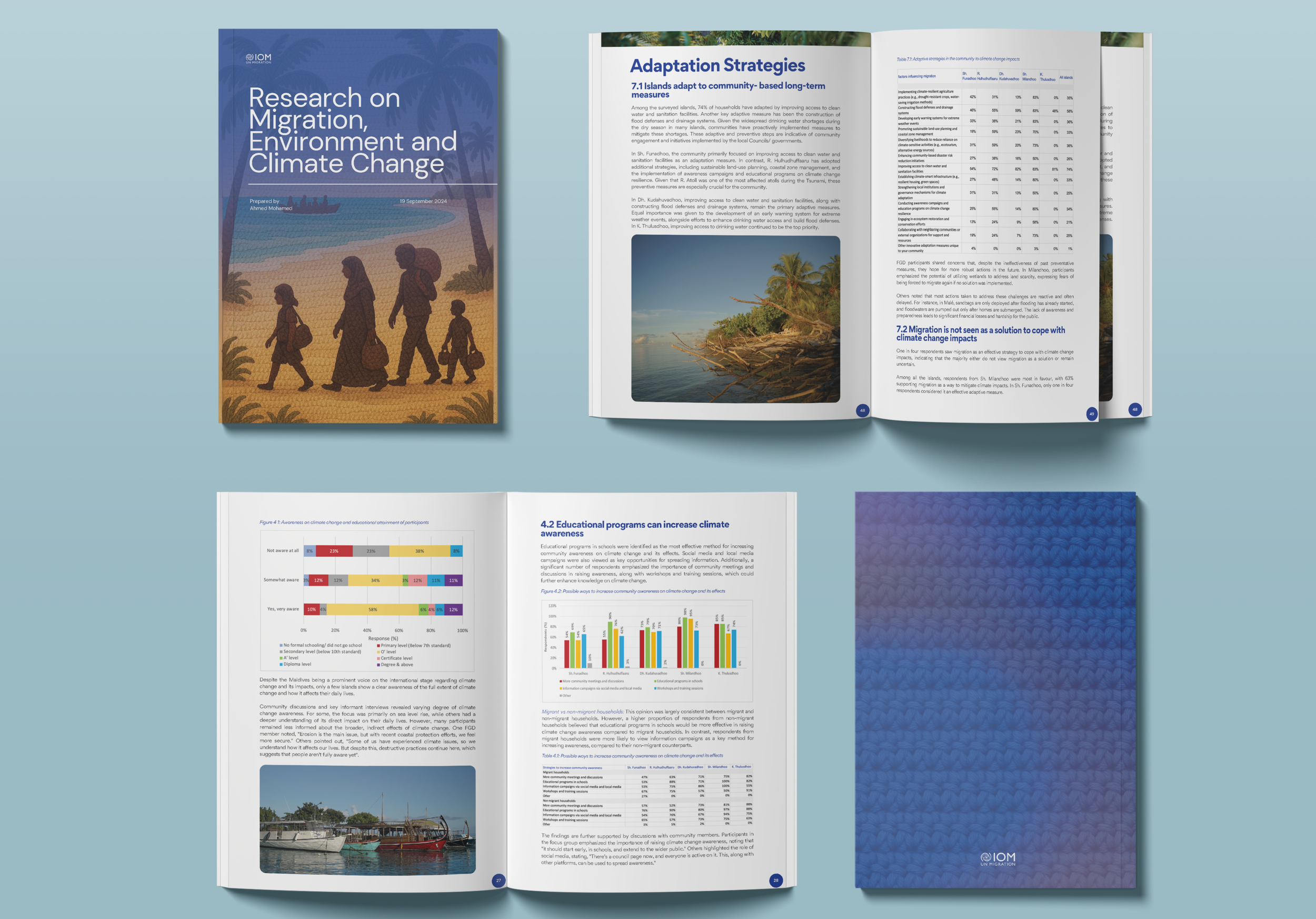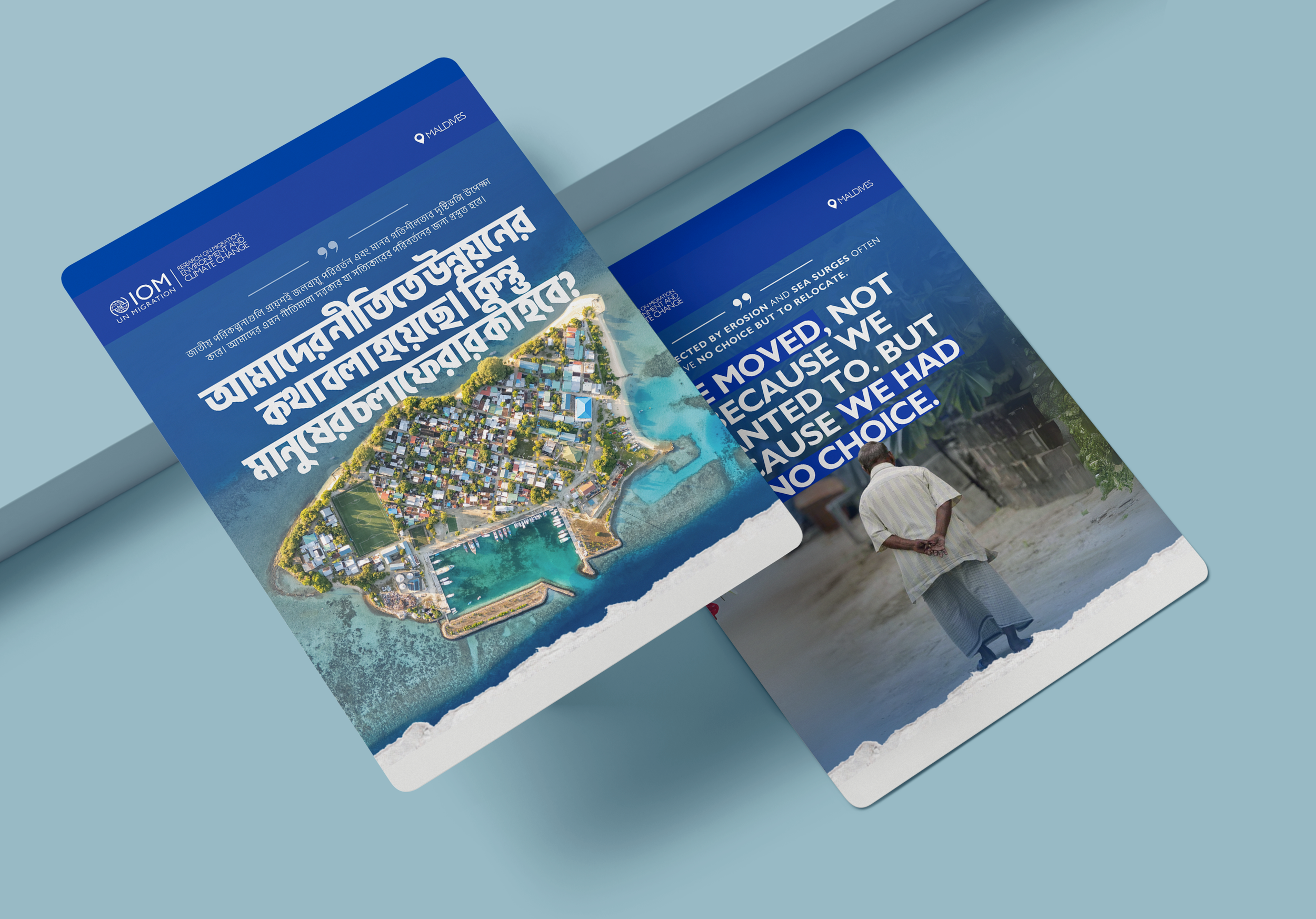 As part of the Climate Change and Human Mobility Project with the International Organization for Migration (IOM) Maldives, we designed and developed the project’s core communication materials. This included the production of a comprehensive baseline report and a practical handbook, prepared for both digital and print use. We also created 10 graphic posts to communicate key findings and messages, alongside 3 short video clips (3–5 minutes each) highlighting the project’s central themes. To ensure wide accessibility, all materials were produced and translated into English, Dhivehi, and Bangla, enabling effective engagement with diverse audiences and stakeholders.